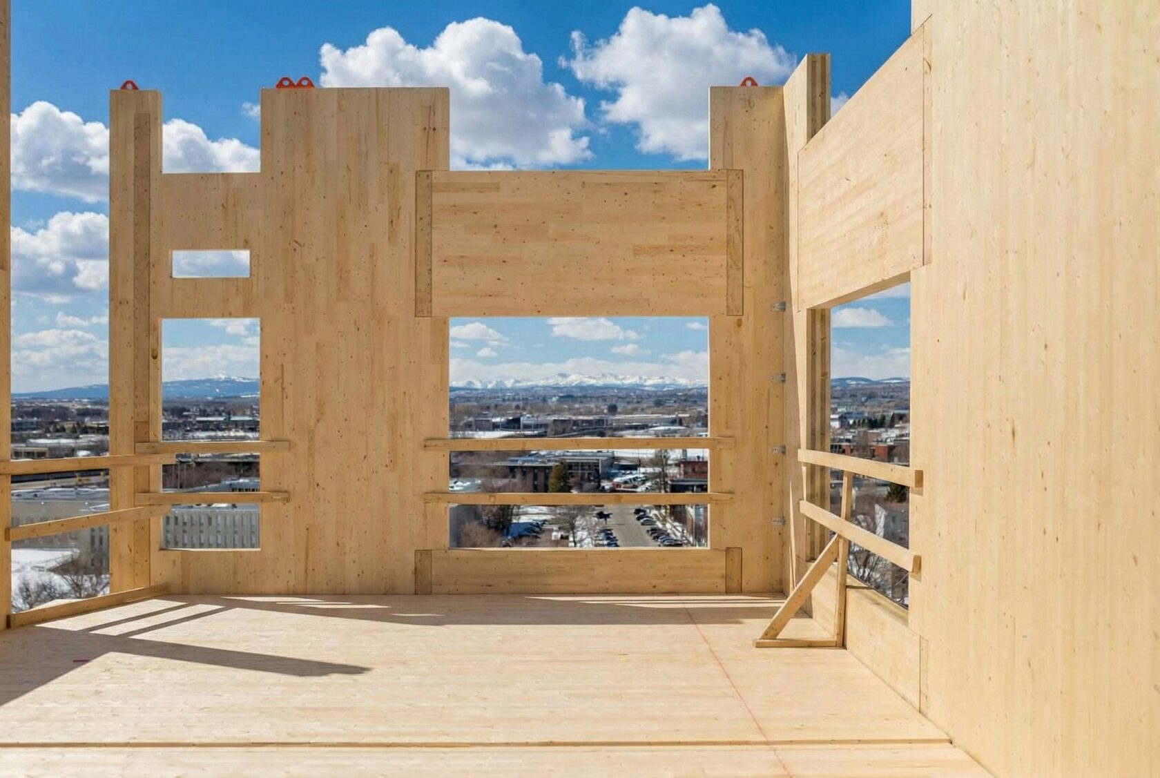 CLT-панели (Cross Laminated Timber) — крупноформатные «массивные» деревянные элементы для стен, перекрытий и кровли. Их производят на заводе, привозят на площадку готовыми и монтируют как конструктор. В CLT Девелопмент эту идею усиливают промышленной логикой: заводская подготовка, точная геометрия, меньше «мокрых» процессов на объекте. По данным компании, здания из таких панелей собирают в 2,5 раза быстрее железобетона, а по массе они легче в 4–5 раз.